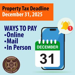 NOTICE: Taxes are due on or before December 31, 2025. Letters have been mailed out!